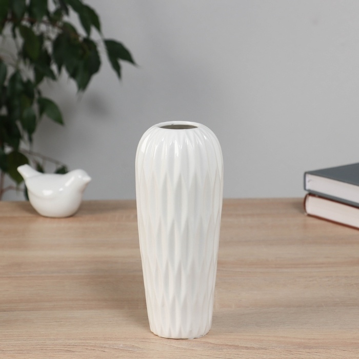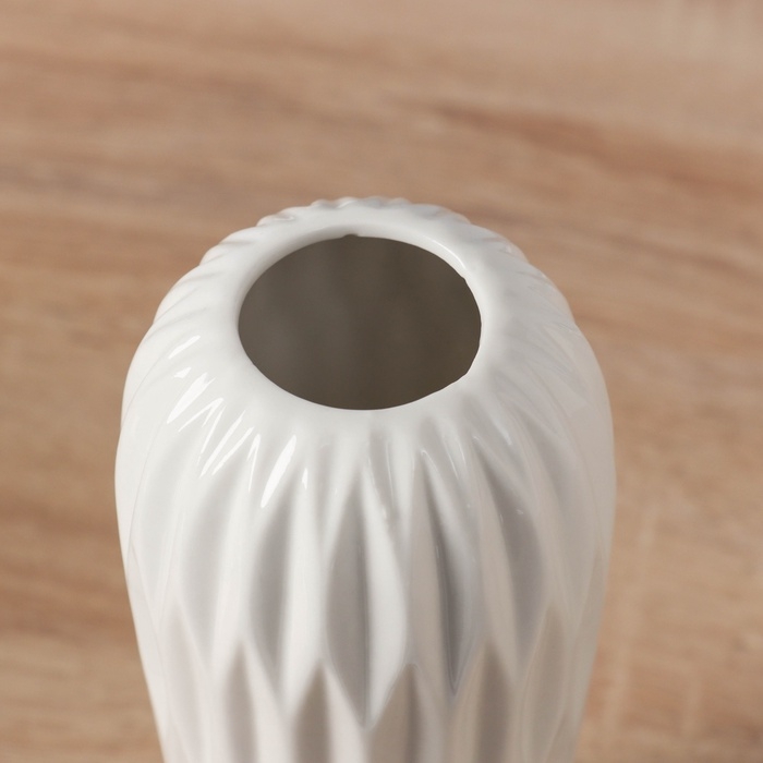 Ваза керамика настольная "Теган" рельеф, 17,5х7,5 см, белый