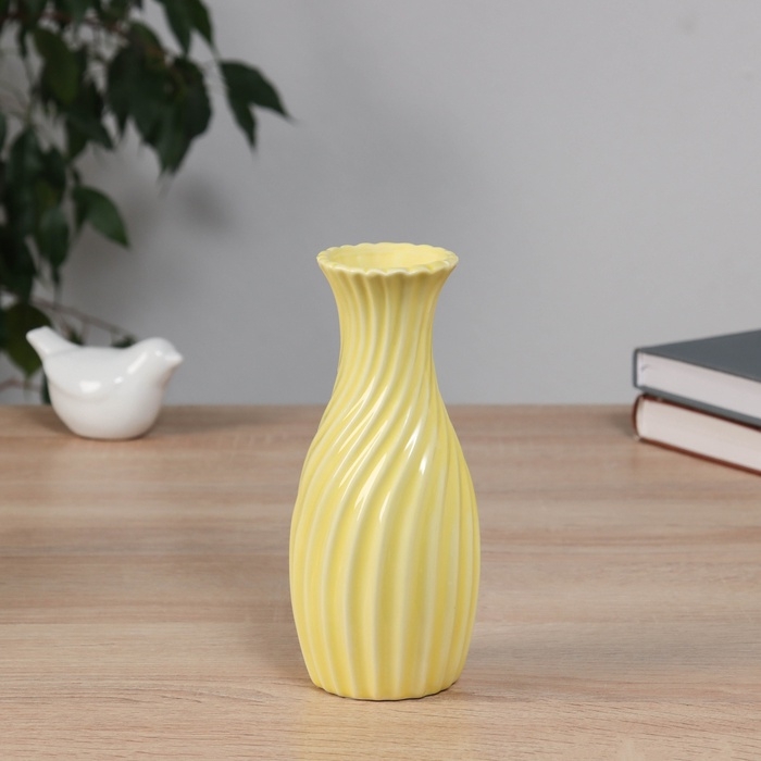 Ваза керамика настольная "Олвен" талия, 18х7,5 см, жёлтый