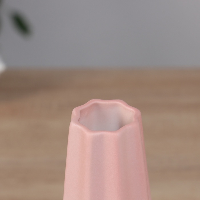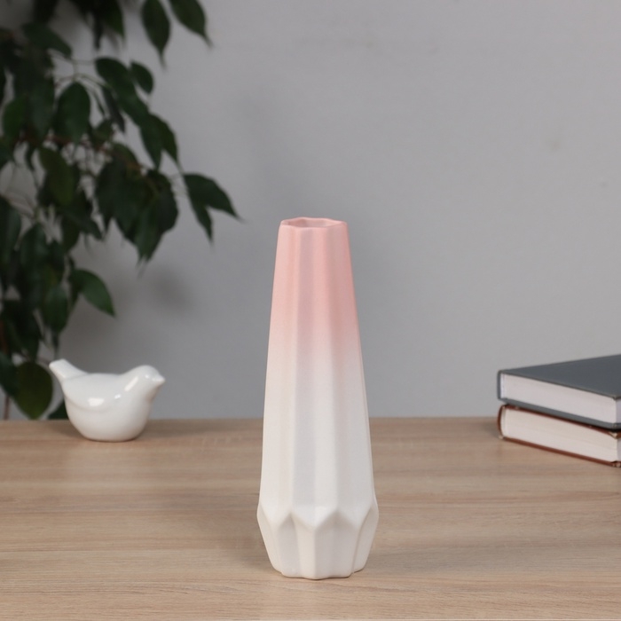 Ваза керамика настольная "Хайди" грани, 20,5х6,5 см, бело-розовый