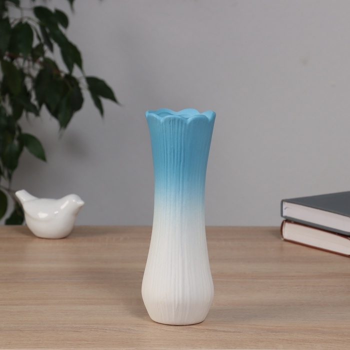 Ваза керамика настольная "Хайди" талия галант, 21х7 см, бело-голубой