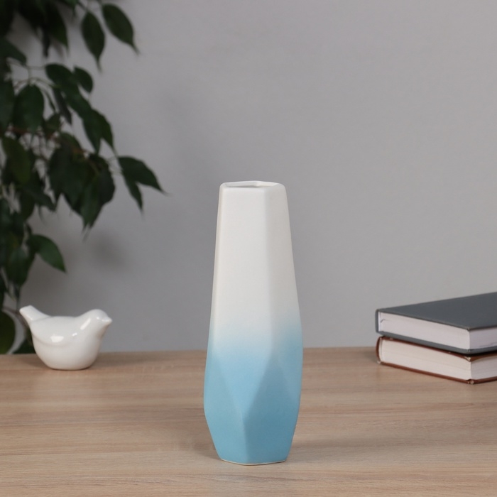 Ваза керамика настольная "Хайди" грани галант, 21х7 см, бело-голубой