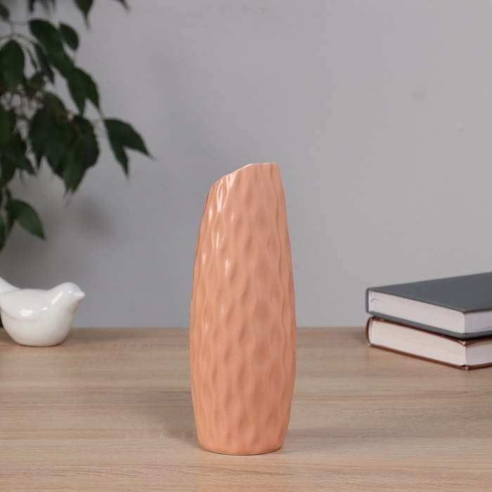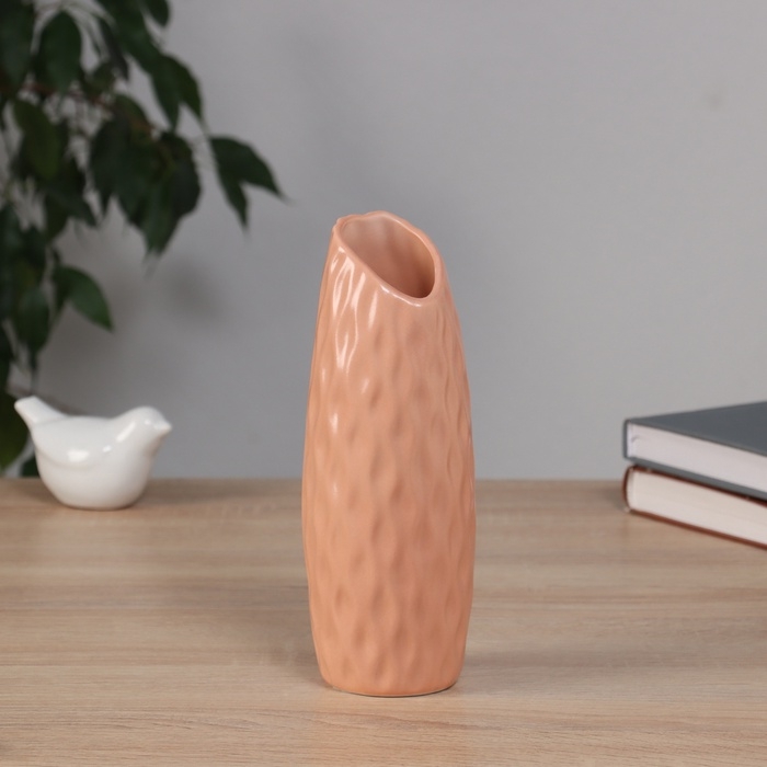 Ваза керамика настольная "Теган" бочка скос, 20,5х6,5 см, персиковый
