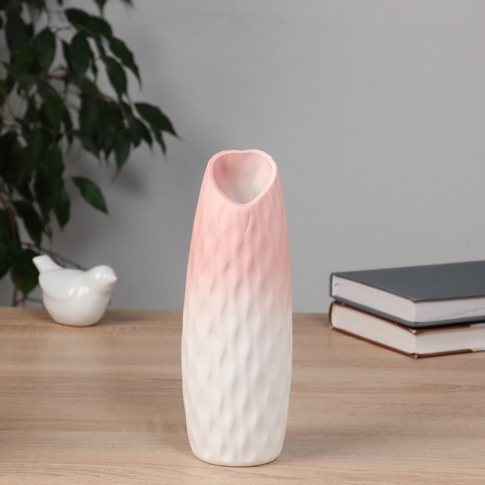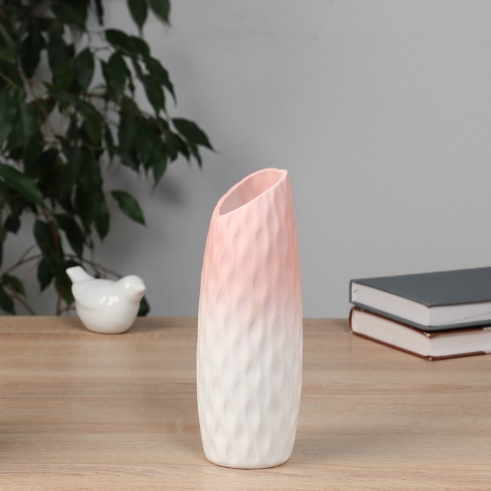 Ваза керамика настольная "Теган" бочка скос, 20,5х6,5 см, бело-розовый