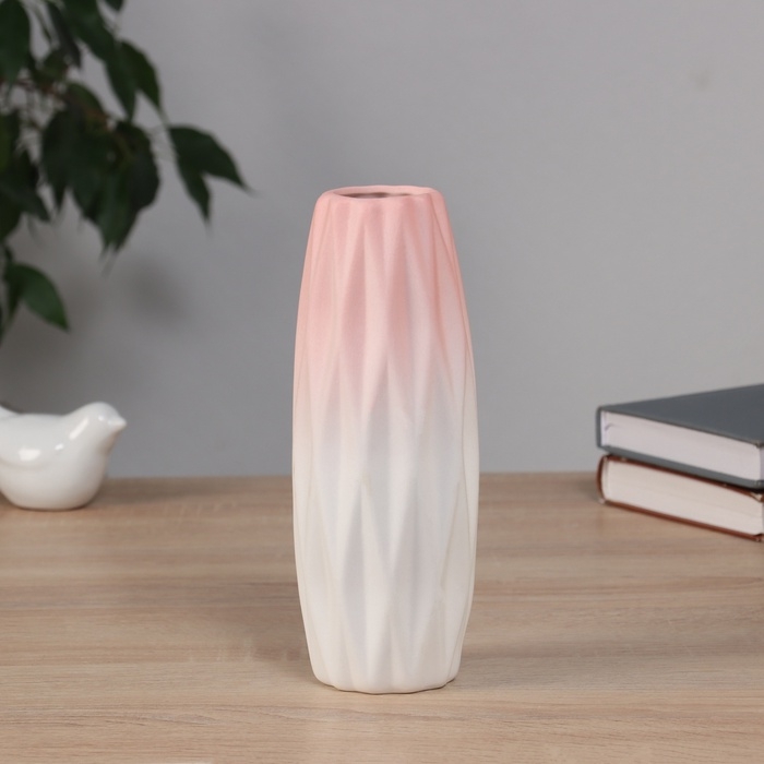 Ваза керамика настольная "Хайди" грани стиль, 20,5х6,5 см, бело-розовый