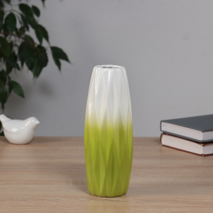 Ваза керамика настольная "Хайди" грани стиль, 20,5х6,5 см, бело-зелёный
