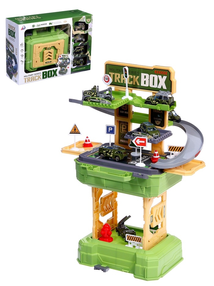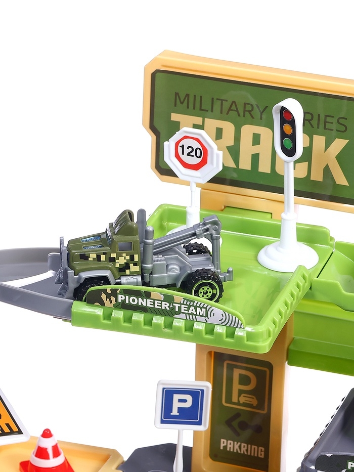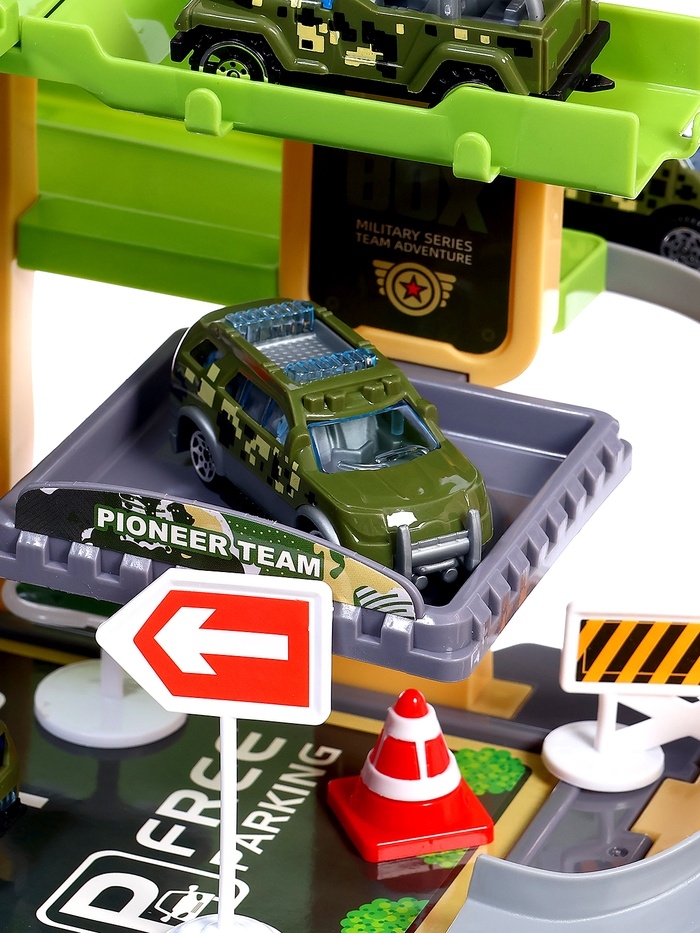 - Комплектация: 6 стильных военных машинок, аксессуары и элементы для создания полноценной парковки.