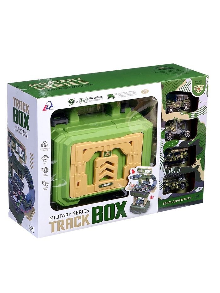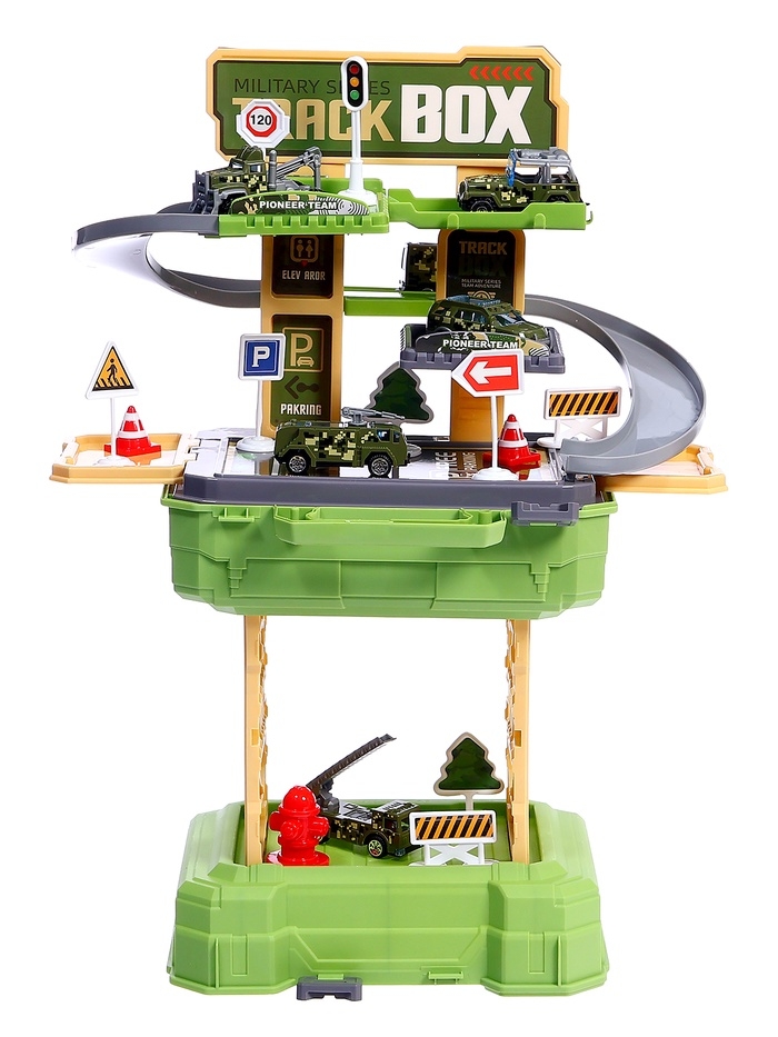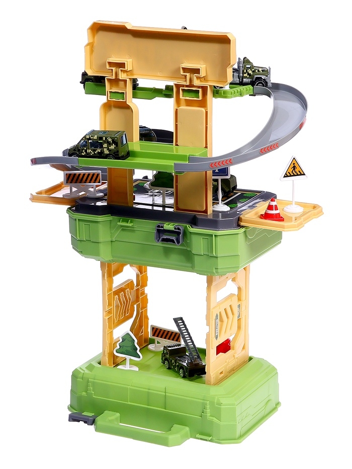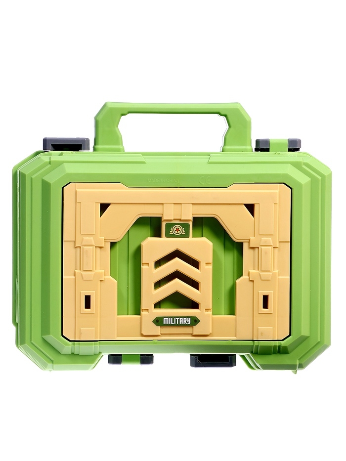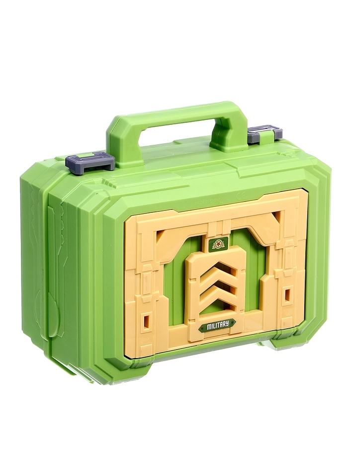 Этот необычный игровой набор станет отличным подарком для маленьких любителей военной техники. Превратите стильный чемодан в многоуровневую парковку с захватывающими элементами и деталями военной тематики, создавая незабываемые игровые сценарии.