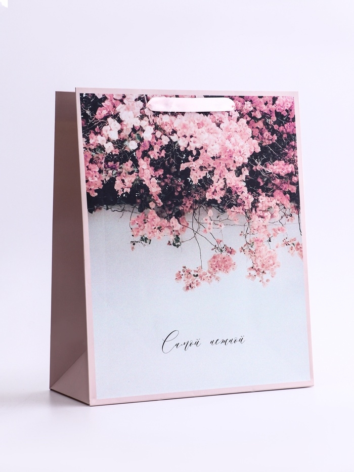 Пакет подарочный вертикальный «Табебуйя розовая», M 26 × 32 × 12 см