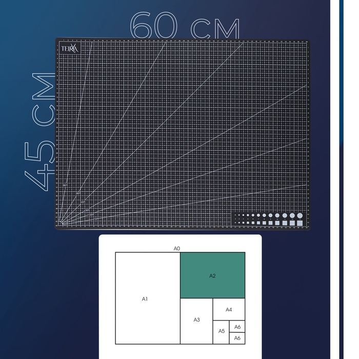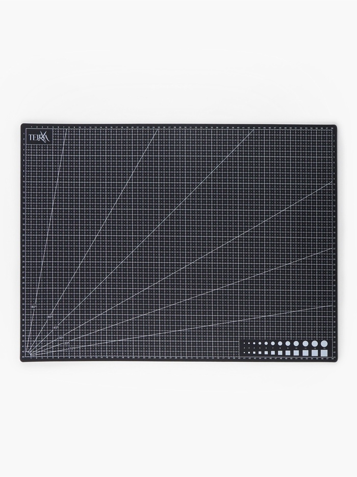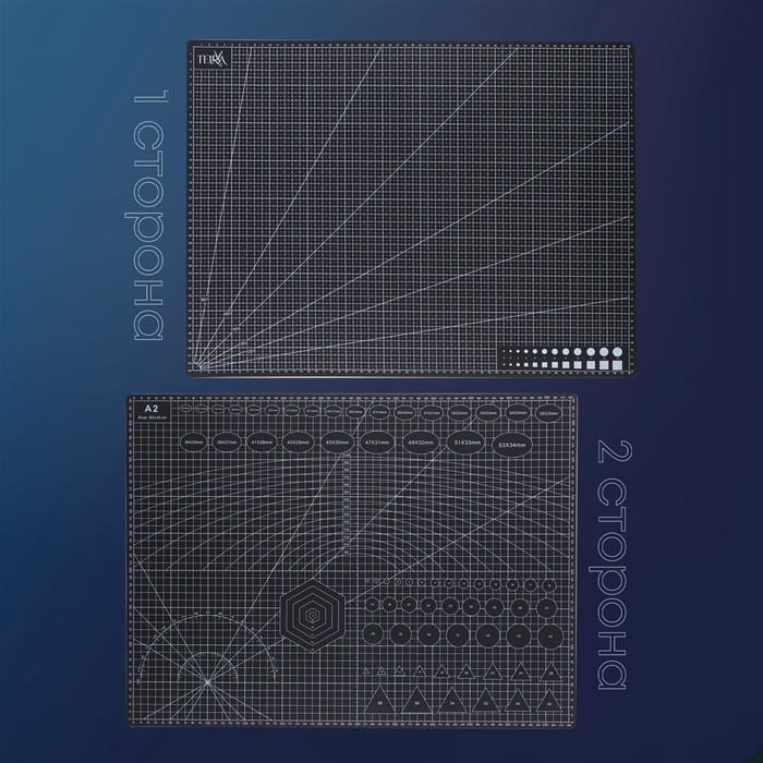 - Двухстороннее использование: с одной стороны на мате нанесены деления в сантиметрах, что удобно при работе с метрической системой измерений, а с другой стороны — деления в дюймах, что помогает при работе с имперской системой измерений.