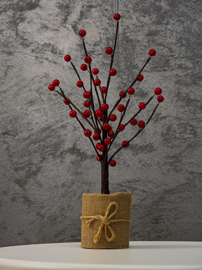 Светодиодный куст «Рябина» 45 см, 24 LED, постоянное свечение, от батареек ААх3 (не в комплекте), свечение тёплое белое