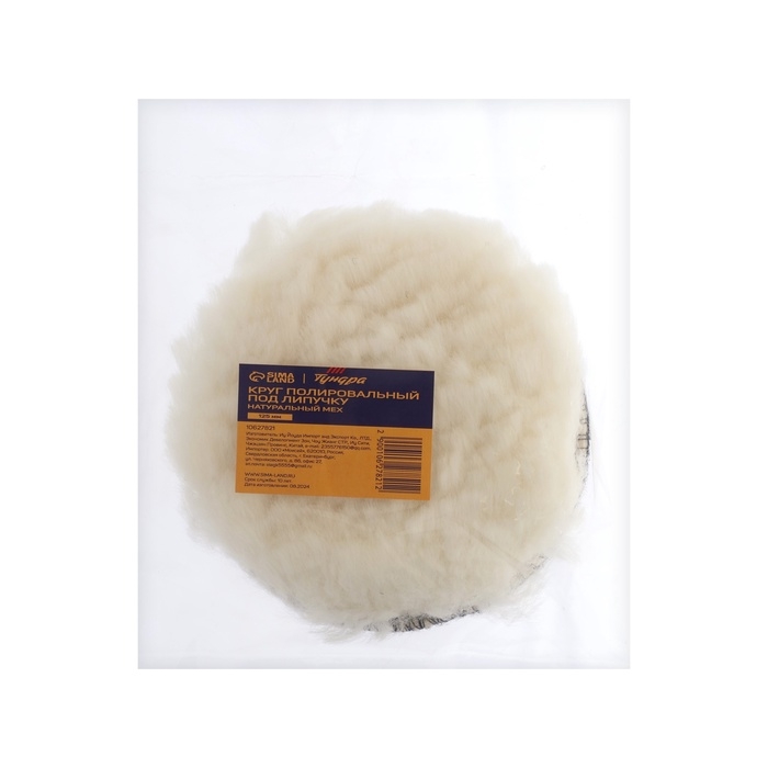 Круг полировальный под липучку ТУНДРА, натуральный мех, 125 мм