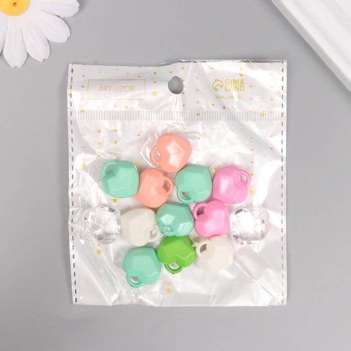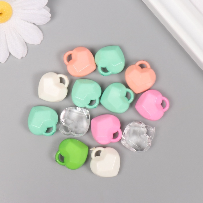 Декор для творчества пластик "Сердечко ромбиком" МИКС набор 20 гр 1,9х1,7х0,8 см
