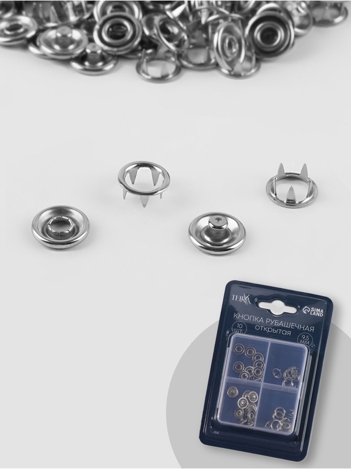 Кнопки рубаш откр d9,5мм (наб 10шт цена за наб) нерж сталь серебряный блистер TR
