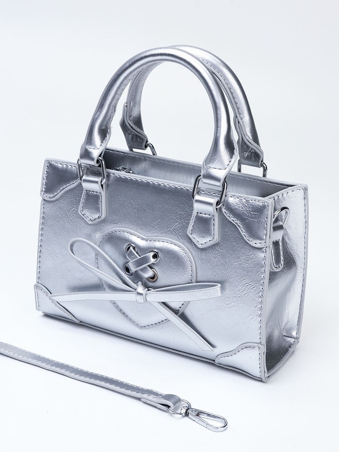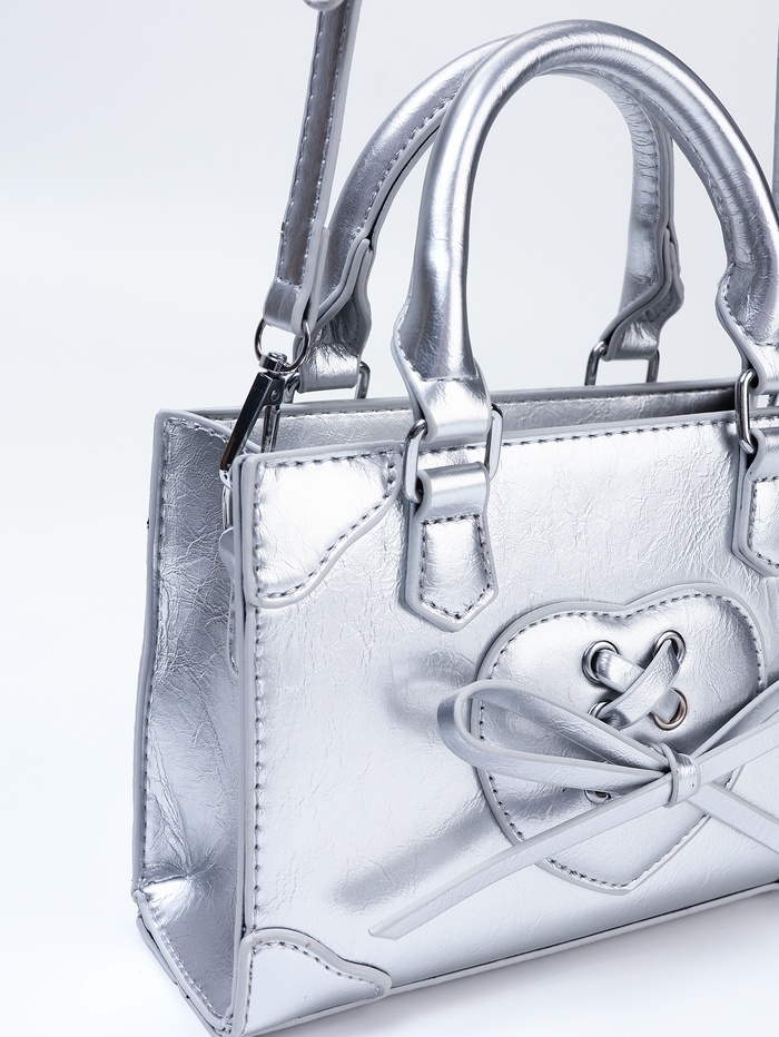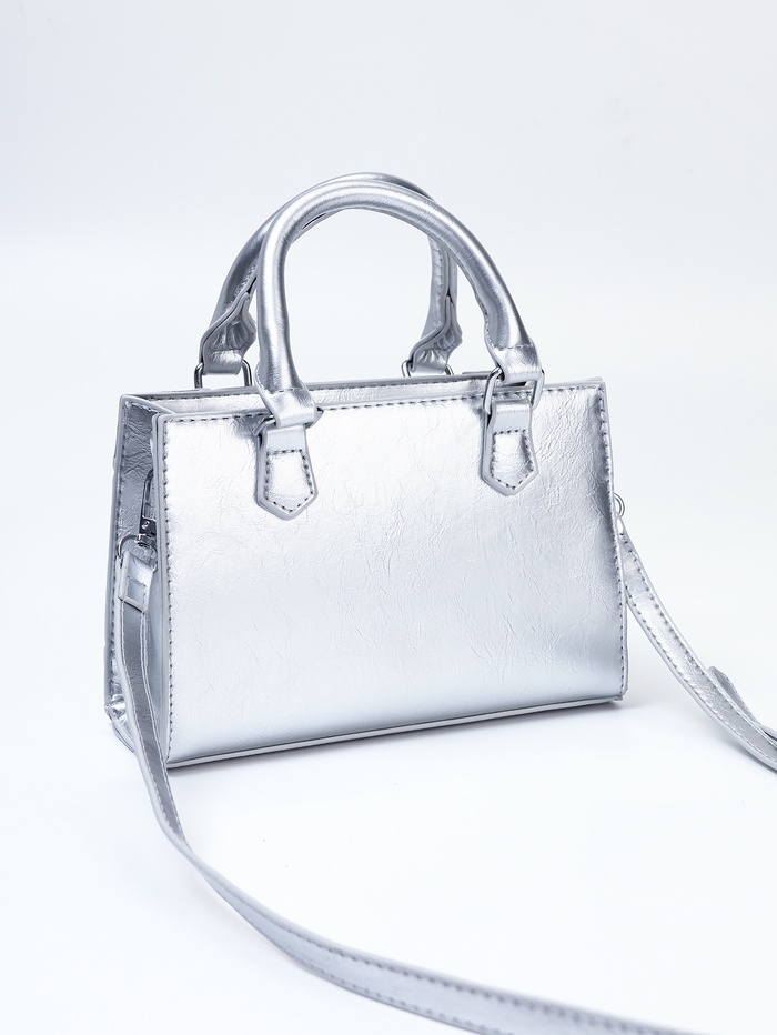 Сумка женская, 20*8*14, отд на молнии, длин ремень, серебро