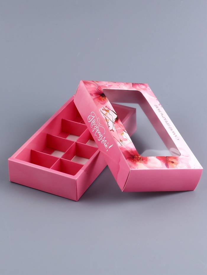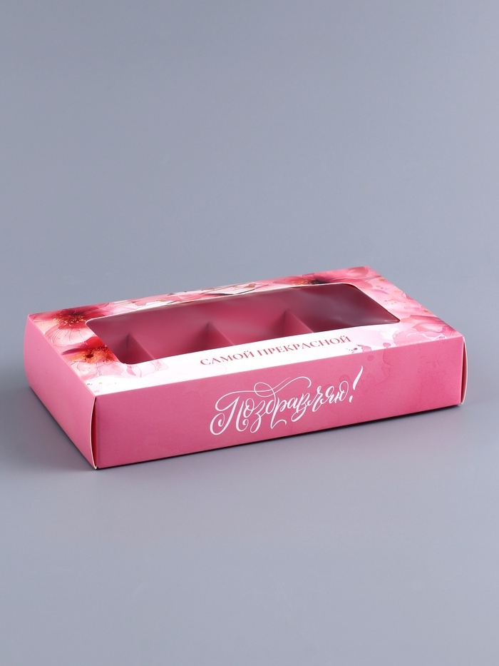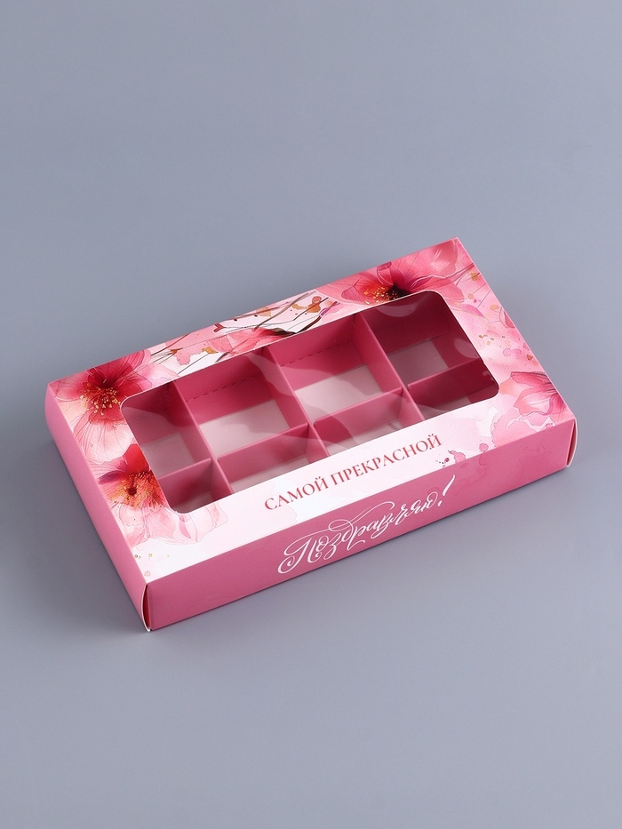 Коробка складная для 8 конфет "Самой прекрасной", 9,8 х 17,7 х 3,5 см. Кондитерская упаковка