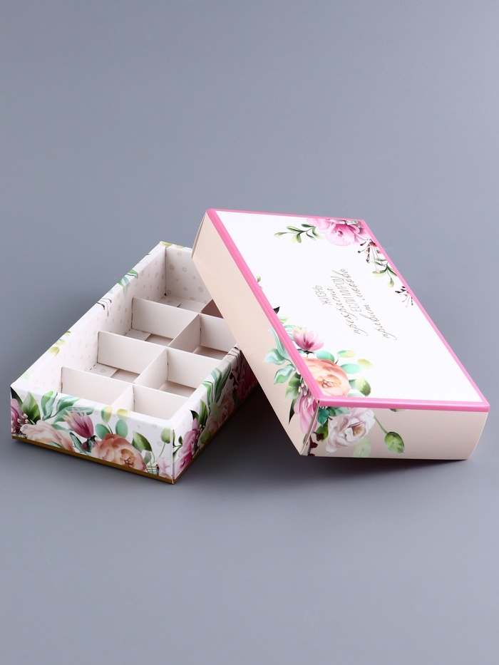 Коробка складная для 8 конфет без окна "С любовью", 9,8 х 17,7 х 3,5 см. Кондитерская упаковка
