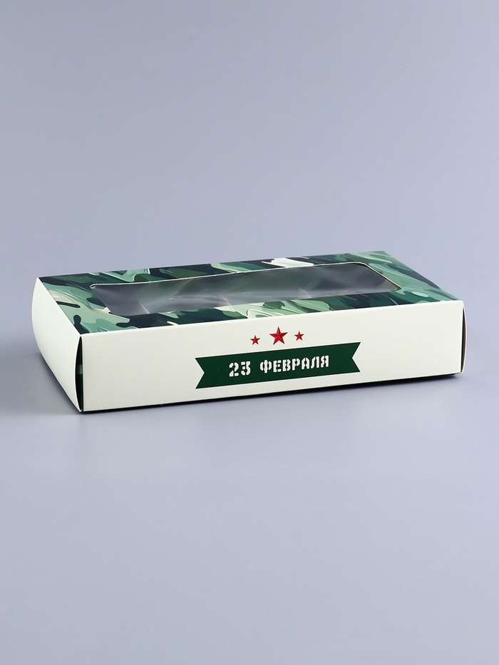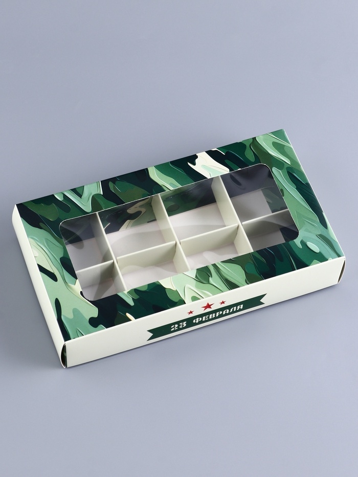 Коробка складная для 8 конфет "23 Февраля", 9,8 х 17,7 х 3,5 см. Кондитерская упаковка