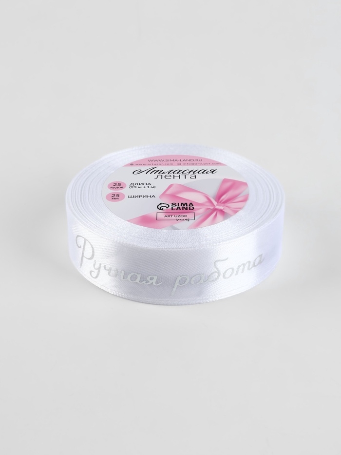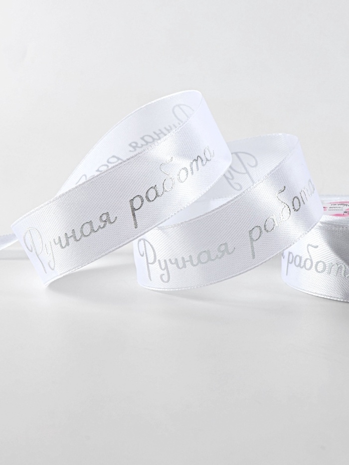 Лента атласная 25мм*25±1ярд(23м±1м) ручная работа №01 тиснение серебро АУ