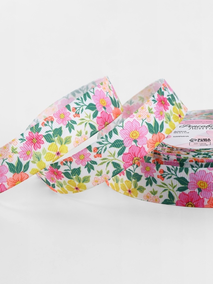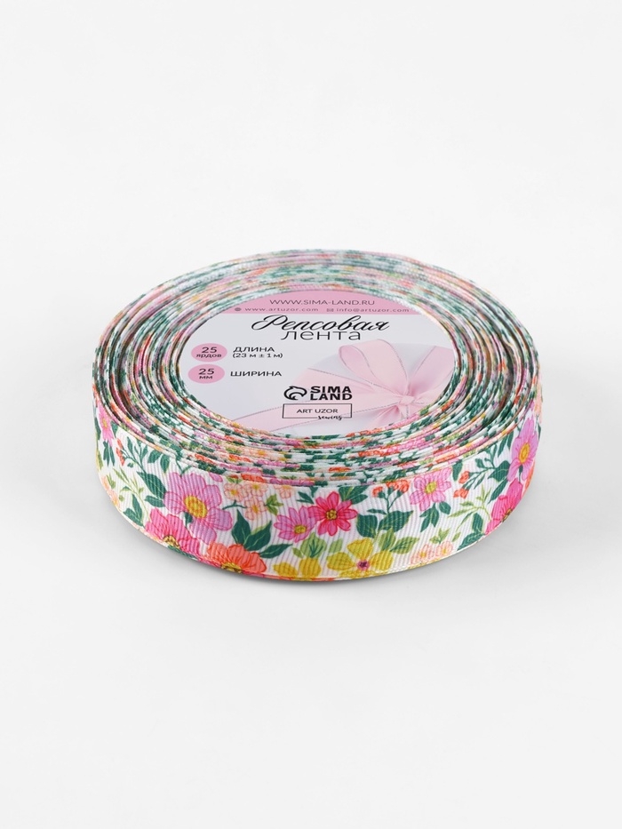 Лента репсовая 25мм*25±1ярд(23м±1м) нежные цветы АУ