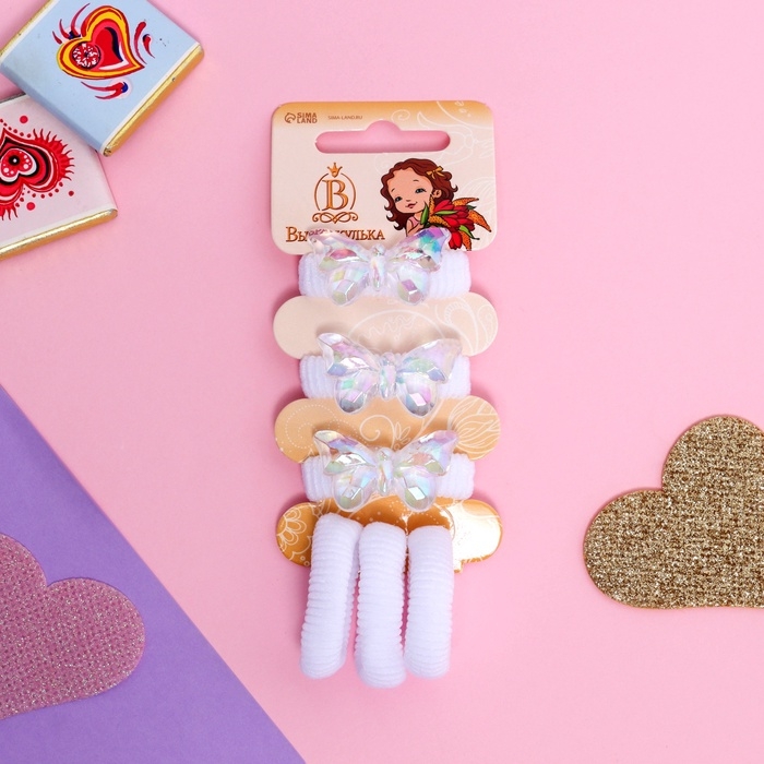 Резинка для волос "Нежность" (набор 6 шт) бабочка, 2 см, белый