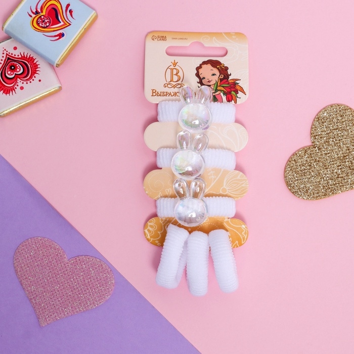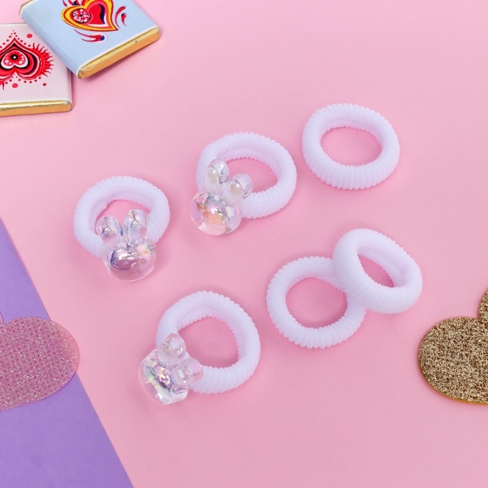 Резинка для волос "Нежность" (набор 6 шт) зайка бантик, 2 см, белый