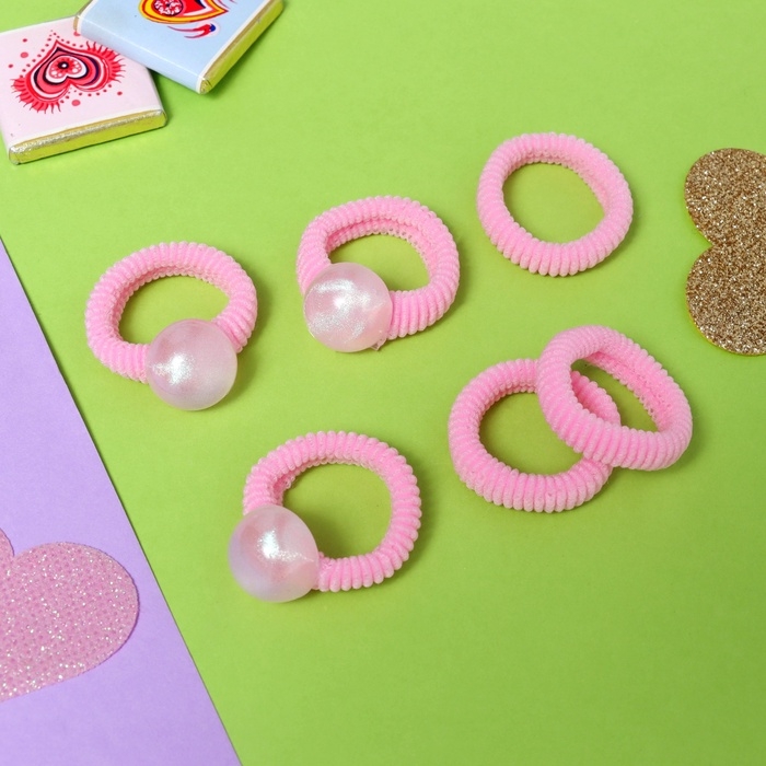 Резинка для волос "Нежность" (набор 6 шт) луна, 2 см, розовый