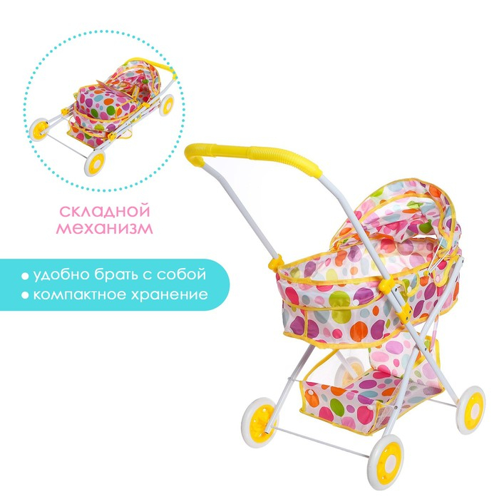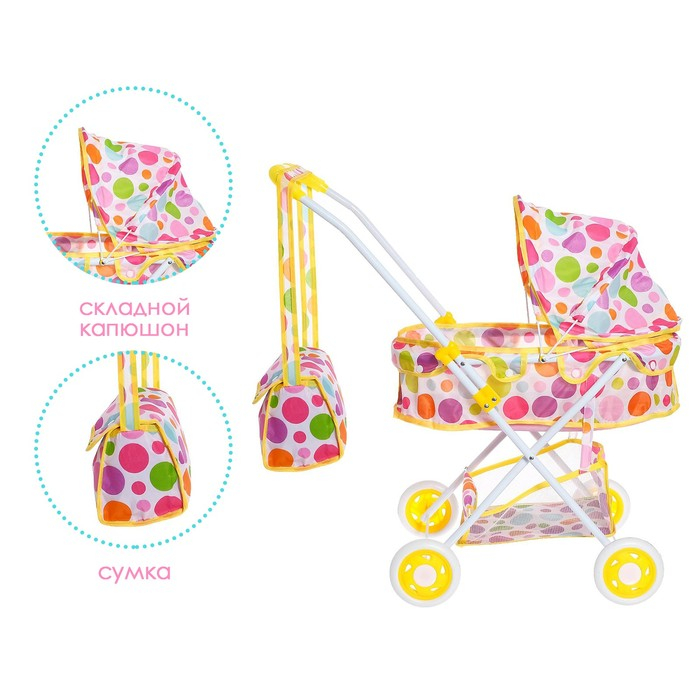 Коляска для кукол «Счастливый карапуз» универсальная, с корзиной и сумкой