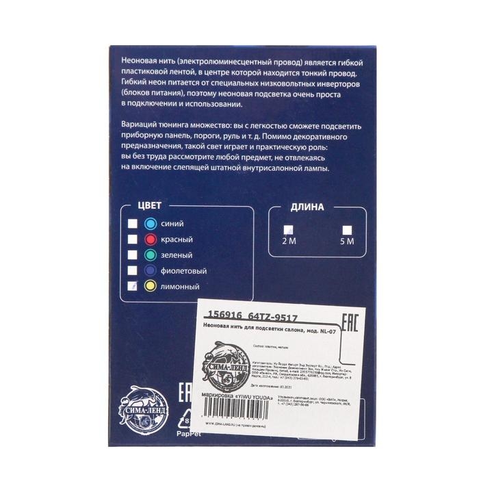 Неоновая нить (электролюминесцентный провод) является гибкой пластиковой лентой в центре которой находится тонкий провод. Гибкий неон питается от специальных низковольтных инверторов (блоков питания), поэтому неоновая подсветка очень проста в подключении и использовании.