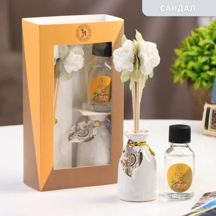 Набор подарочный с диффузором "Ваза с цветком" сандал, "Богатство Аромата"