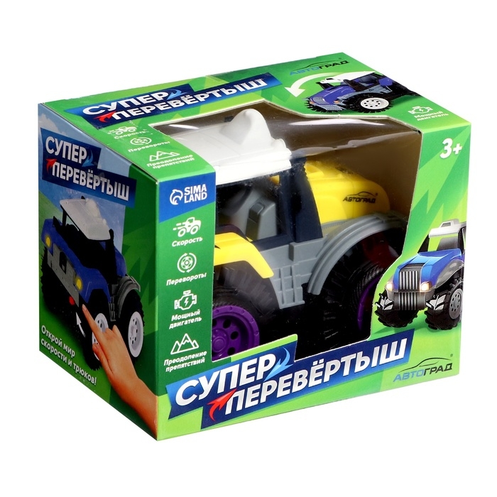 Машинка-перевертыш — это транспорт, спроектированный так, что он может продолжать движение даже после того, как перевернётся. Большие колёса помогают игрушке преодолевать небольшие препятствия. Если она упрётся в стену, то просто перевернётся и продолжит ехать дальше.