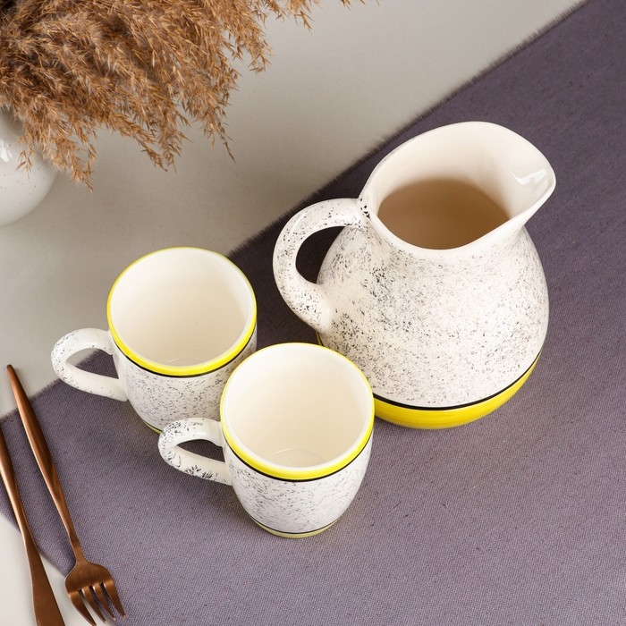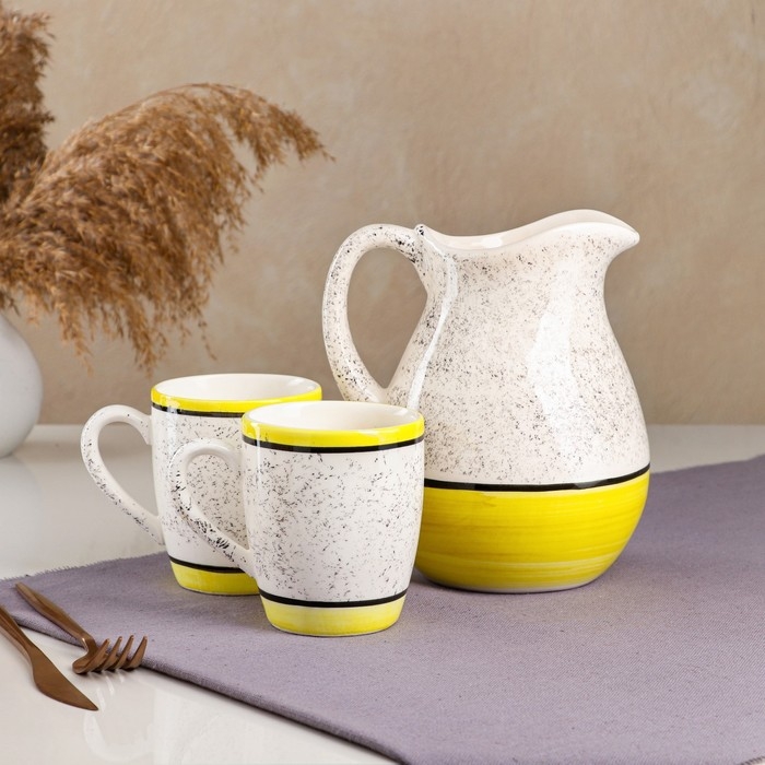 Набор посуды "Персия", керамика, желтый, 3 предмета: кувшин 1.5 л, кружки 350 мл, 1 сорт, Иран