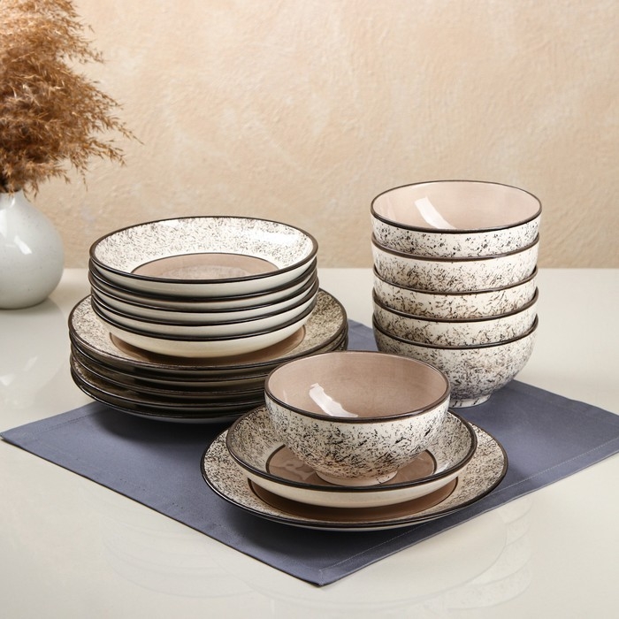 Набор посуды "Восточный", керамика, серый, 18 предметов,Иран