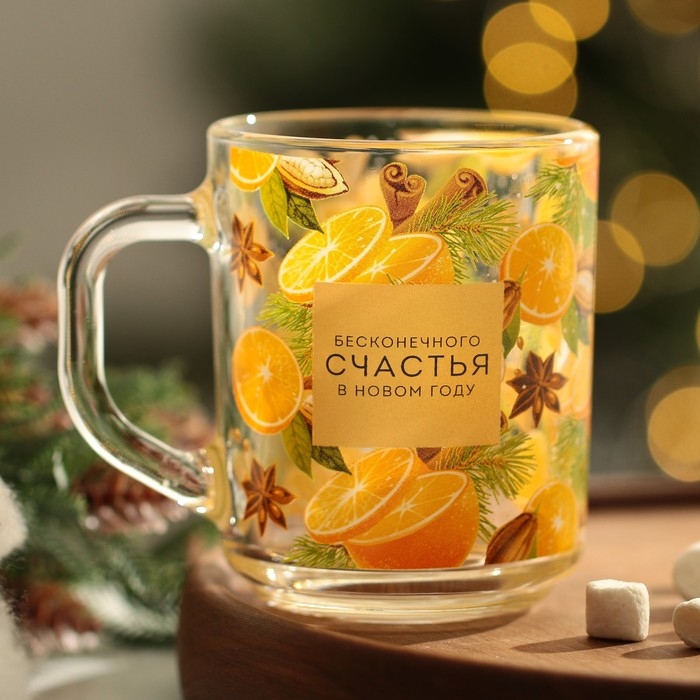 Кружка стеклянная новогодняя Дорого внимание «Глинтвейн», 200 мл