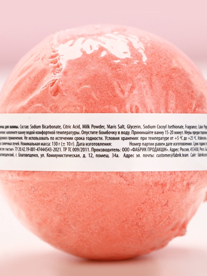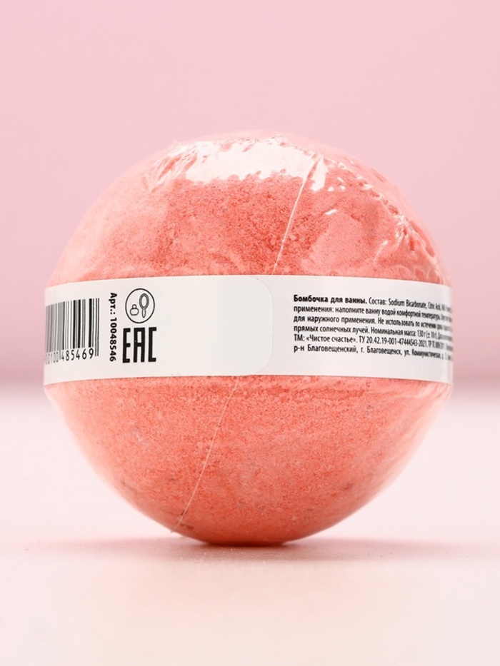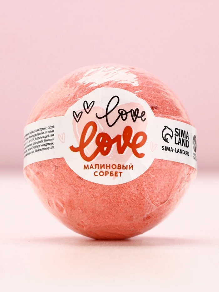 Бомбочка для ванны Love, 130 гр, аромат малинового сорбета, ЧИСТОЕ СЧАСТЬЕ
