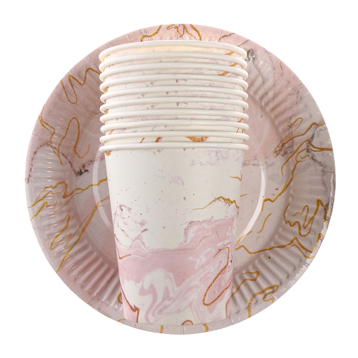 Набор бумажной посуды одноразовый «Мрамор»: 10 стаканов, 10 тарелок