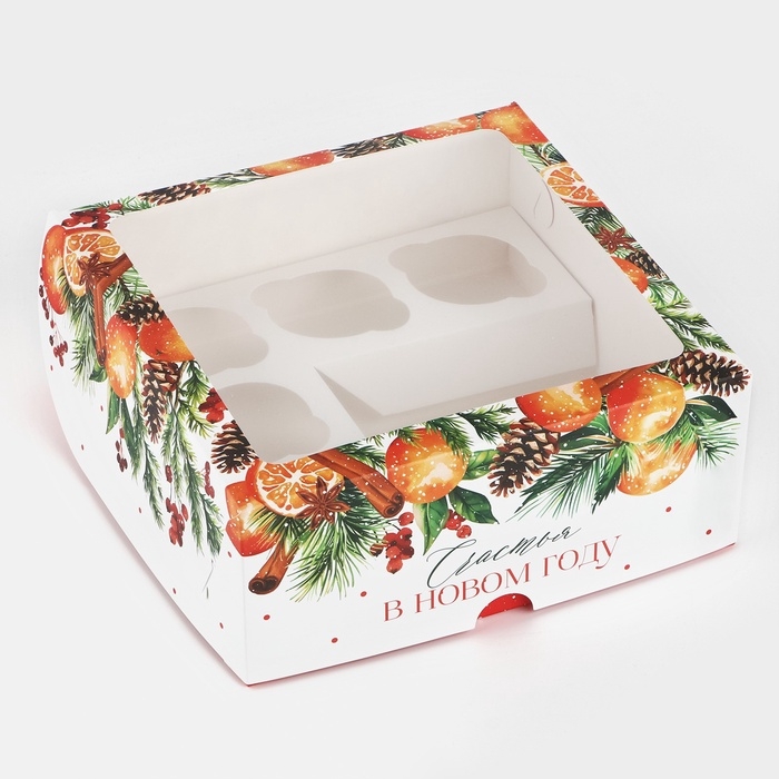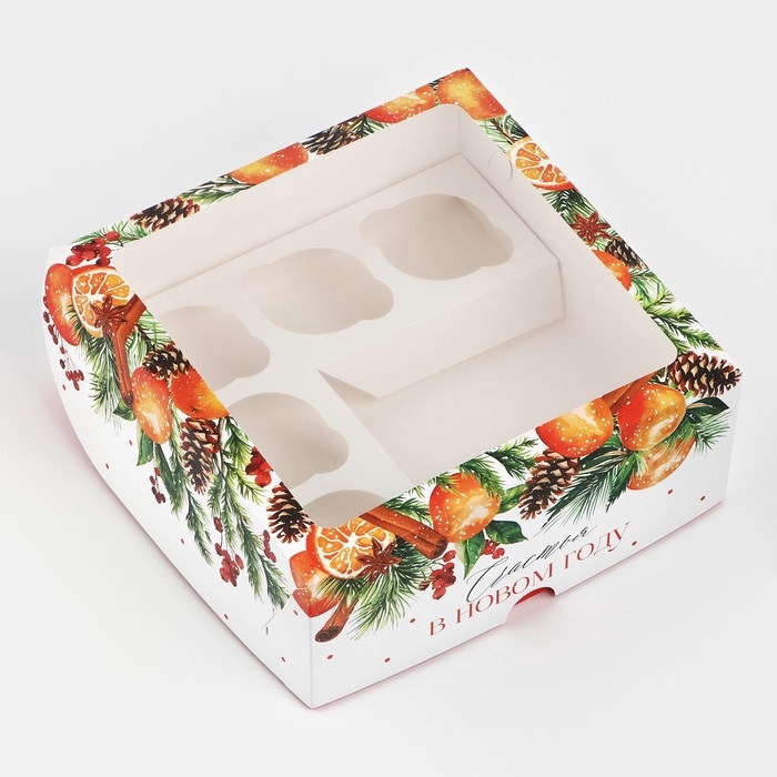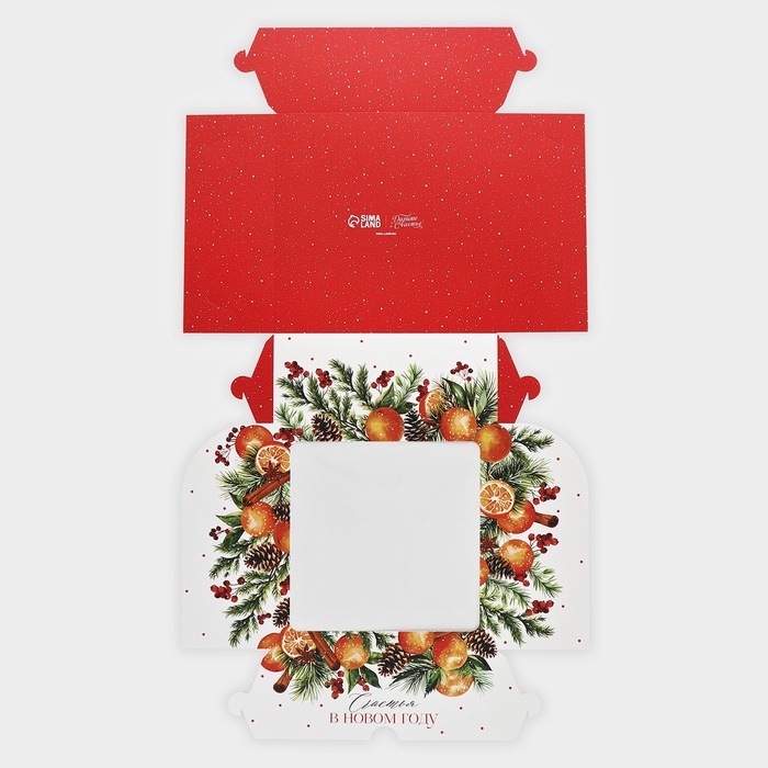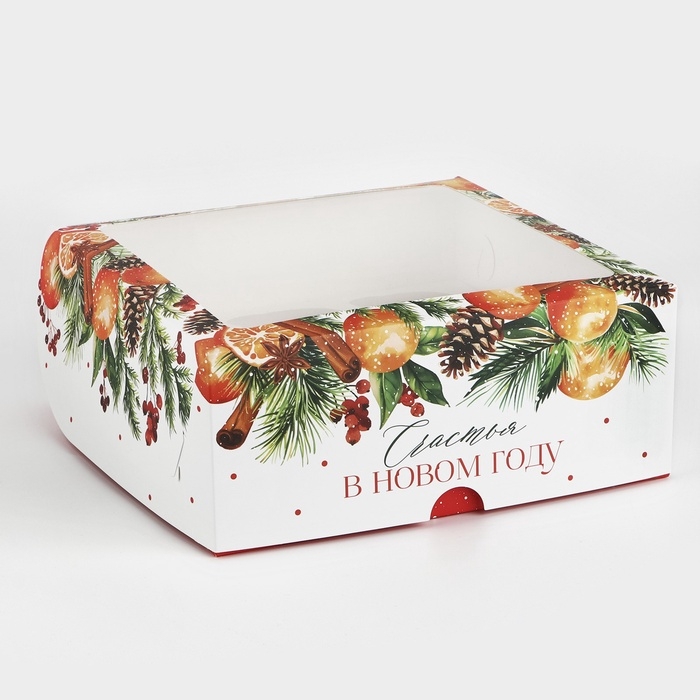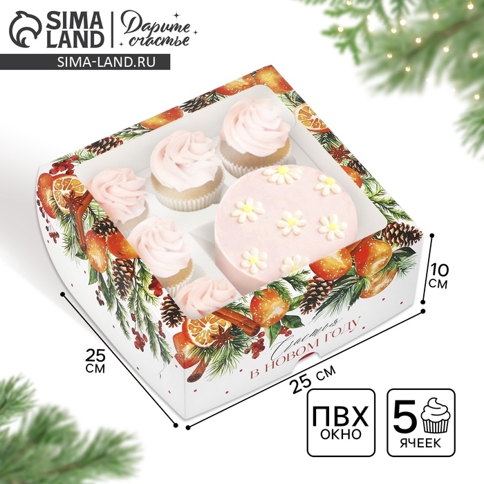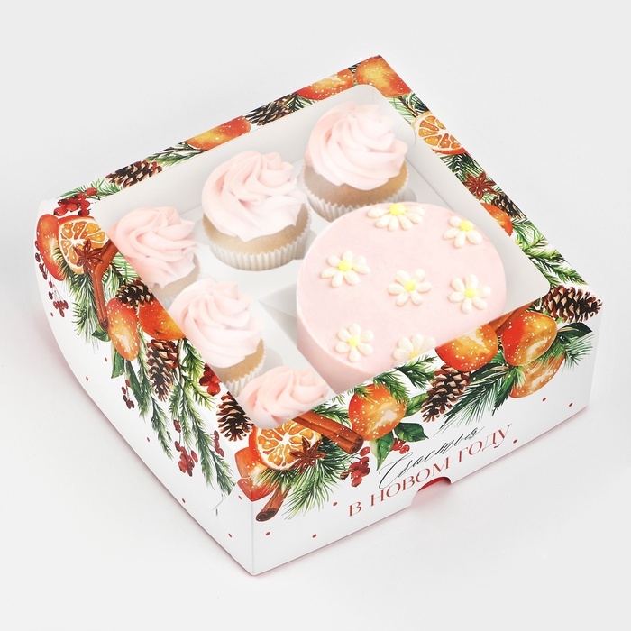 Коробка для капкейков и бенто-торта «Счастья в Новом году», венок 25 х 25 х 10 см