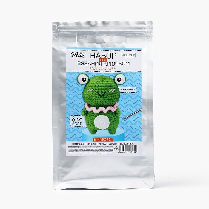 Набор для вязания крючком. Амигуруми: мягкая игрушка своими руками «Лягушонок», 8 см