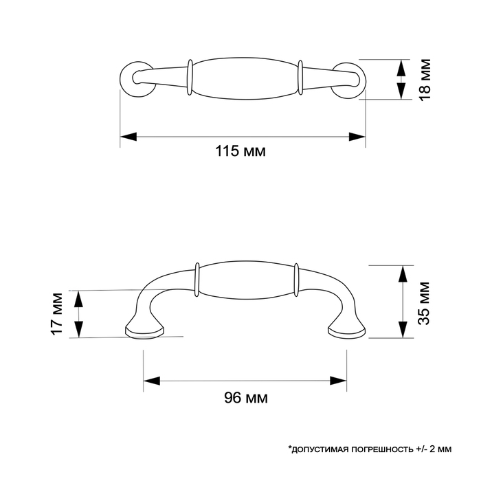 Ручка-скоба CAPPIO RSC012, пластик, м/о 96 мм, цвет бронза, 4 шт.