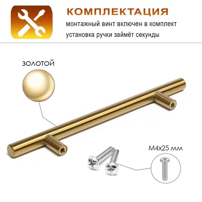 Ручка-рейлинг CAPPIO FRIDA, нержавеющая сталь, d=12 мм, м/о 128 мм, цвет золото, 4 шт.