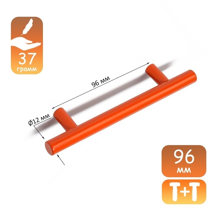 Ручка-рейлинг CAPPIO FRIDA, нержавеющая сталь, d=12 мм, м/о 96 мм, цвет оранжевый, 4 шт.