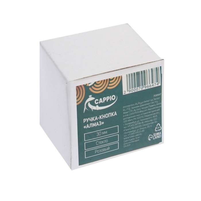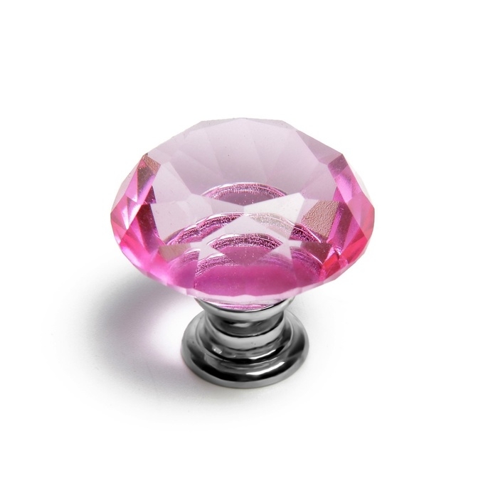 Ручка-кнопка CAPPIO "Алмаз", цвет розовый, стеклянная, d=30 мм, 8 шт.