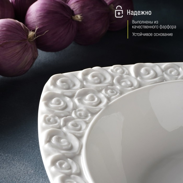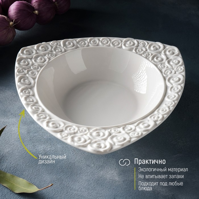 Салатник фарфоровый Magistro «Роза Бланш», 740 мл, d=25 см, цвет белый
