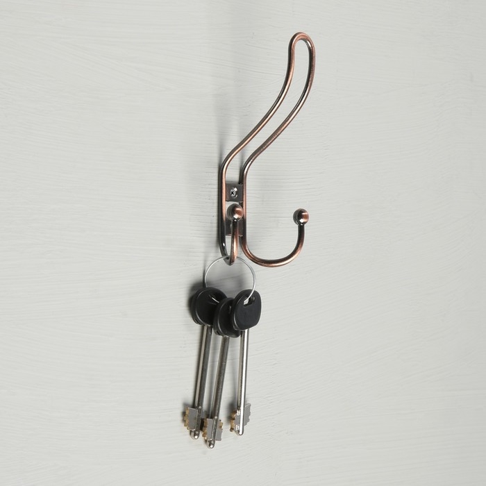 Крючок мебельный ТУНДРА TKT002, трехрожковый, медь, 4 шт TMP
