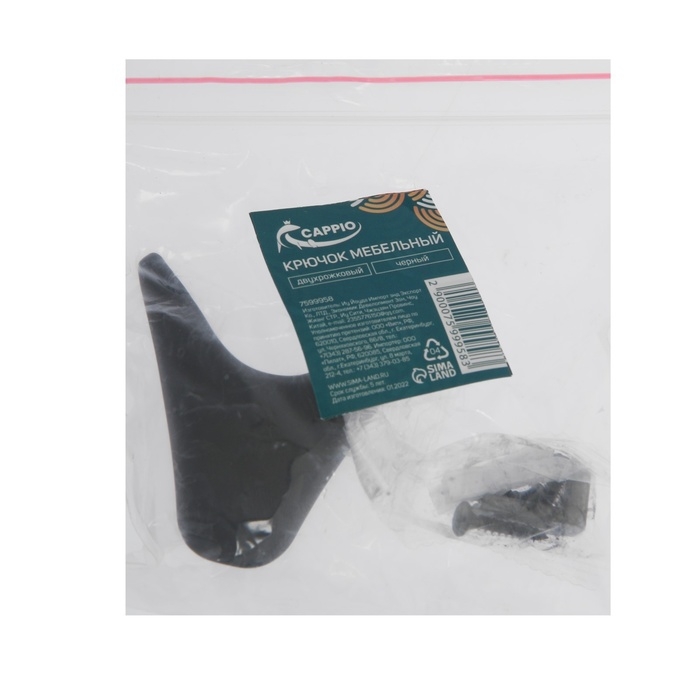 Крючок мебельный CAPPIO GOAT, двухрожковый, цвет черный, 3 шт