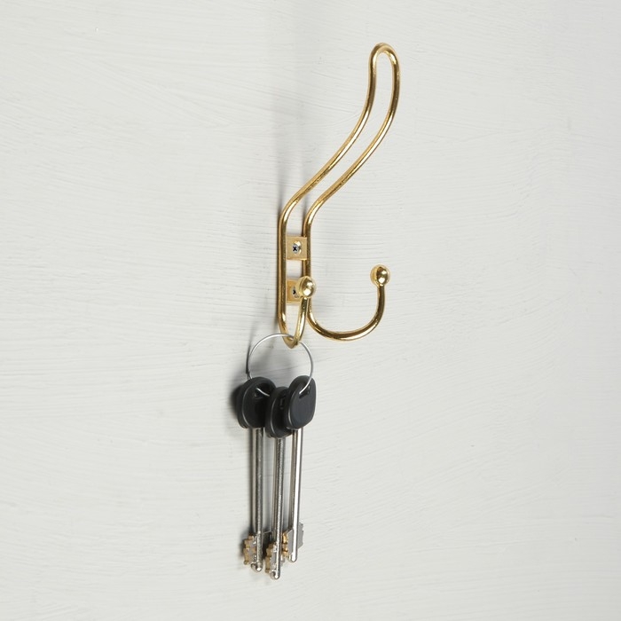 Крючок мебельный ТУНДРА TKT002, трехрожковый, золото, 4 шт TMP