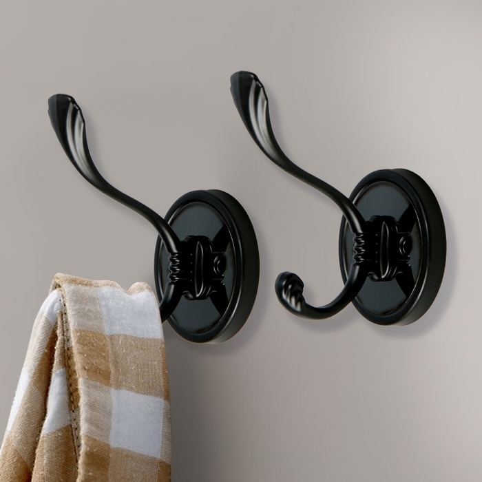 Крючок мебельный CAPPIO VINTAGE, двухрожковый, цвет черный, 4 шт.