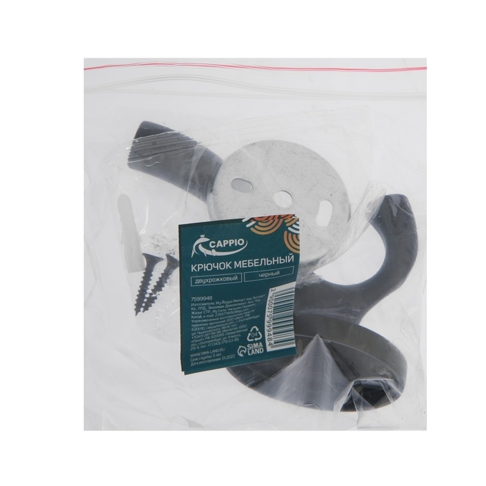 Крючок мебельный CAPPIO CONE, двухрожковый, цвет черный, 3 шт.