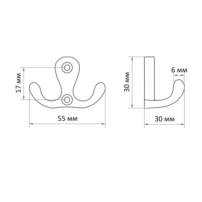 Крючок мебельный ТУНДРА TKD003, двухрожковый, черный, 8 шт TMP