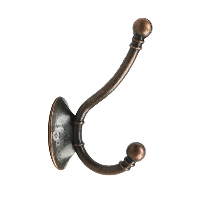 Крючок мебельный ТУНДРА TKD021, двухрожковый, медь, 5 шт TMP