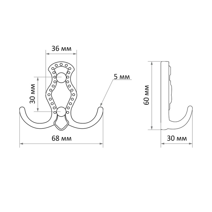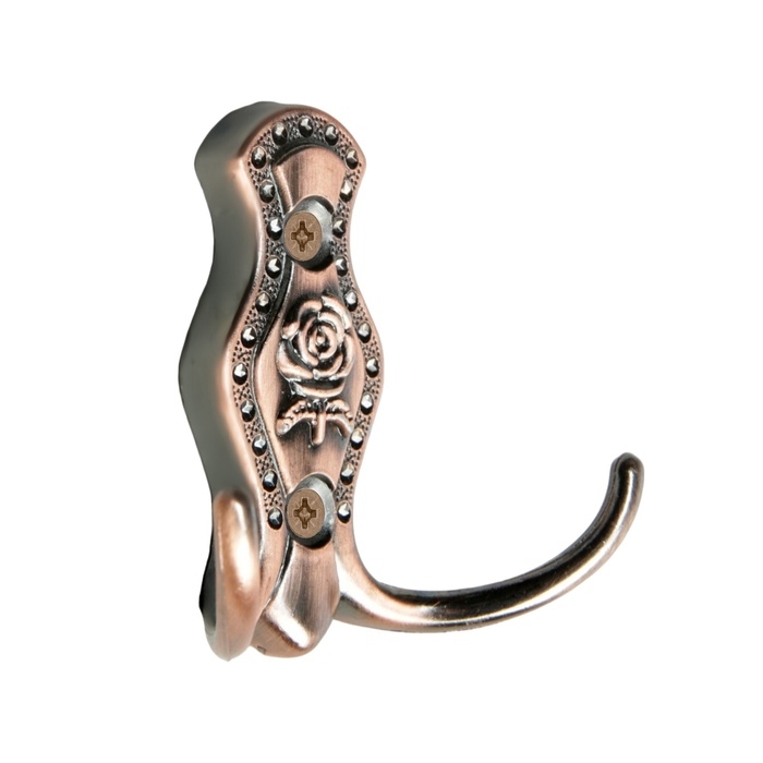 Крючок мебельный ТУНДРА TKD023, двухрожковый, медь, 4 шт TMP